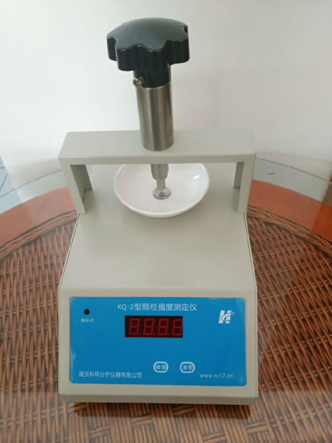 KQ-2型氧化铝颗粒强度测定仪是由南京科环分析仪器有限公司生产的新产品, 仪器四位数字显示,且选用先进的精密传感器,适用于测定各样固体颗粒的抗压破碎强度。仪器操作很方便,体积小、强度值直读等优点,是测定饲料、药品、催化剂、化肥,分子筛,各种颗粒强度新一代强度测定仪。
